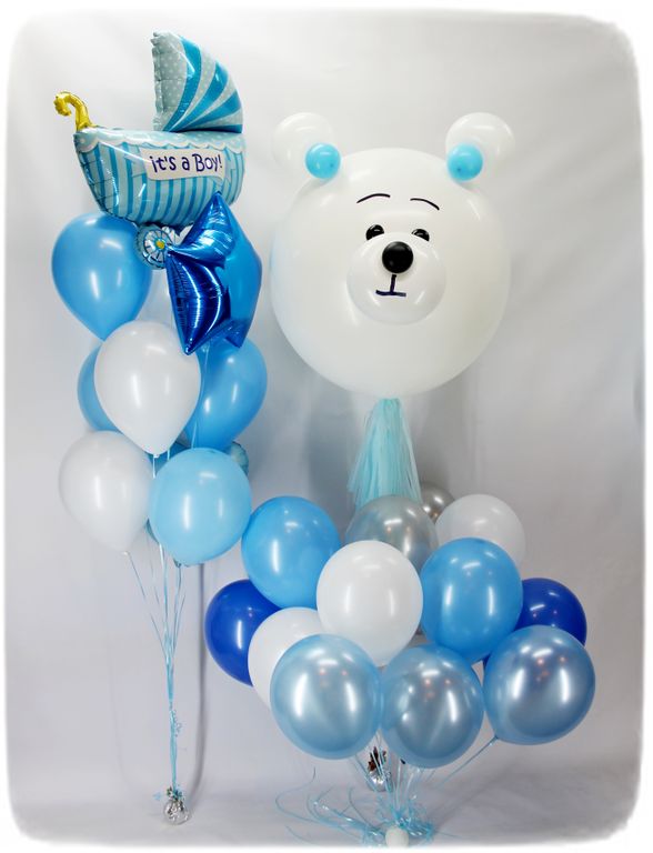 Состав : Фонтан с каляской ,мишка, 15 шаров с гелием с обработкой